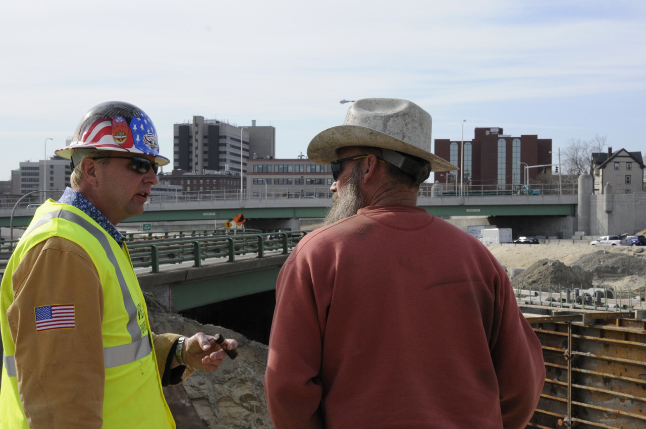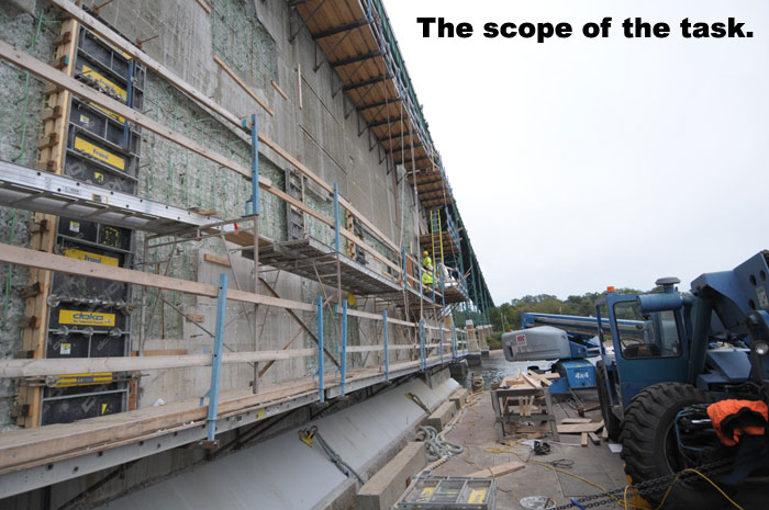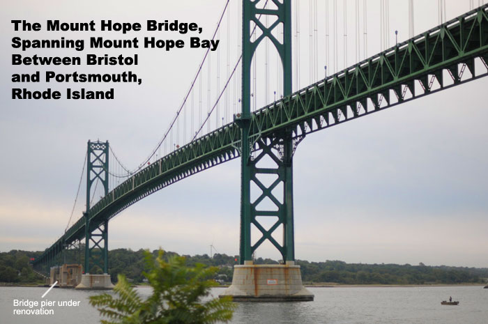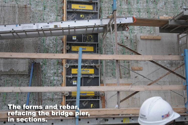 Below is a gallery of images that show the process of refacing a bridge pier on the Mount Hope Bridge.